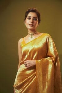 Popular actor Rashi Khanna in Banarasi saree
